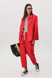 Еще не нашли свой идеальный комплект? У нас вы сможете купить женский брючный костюм белорусского производства с разными вариантами верха. Элегантные сеты с пиджаком вобрали в себя все лучшее от делового и повседневного стиля. Среди дизайнерских решений представлены модели с широкими брюками с высокой посадкой и удлиненным двубортным жакетом или пиджаком-оверсайз. Модели можно дополнить изящной блузкой, лаконичной рубашкой, базовой водолазкой, парой обуви на каблуке, ботильонами, лоферами или белыми кроссовками. Лаконичные ансамбли отличаются строгостью, отшиты из плотной однотонной ткани. Это вечная классика, уместная в офисе и на официальном приеме. В качестве низа предусмотрены кюлоты, дудочки, палаццо. Для прогулок предусмотрены минималистичные комплекты в стиле спорт-шик из плотного трикотажа одного цвета и фактуры.