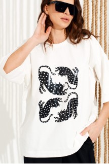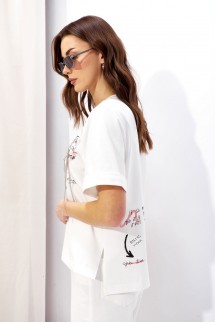 В каталоге представлены футболки из белорусского трикотажа классического кроя, майки и топы разной длины.