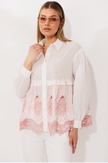 - платья-рубашки с ажурными аппликациями, объемными рукавами.